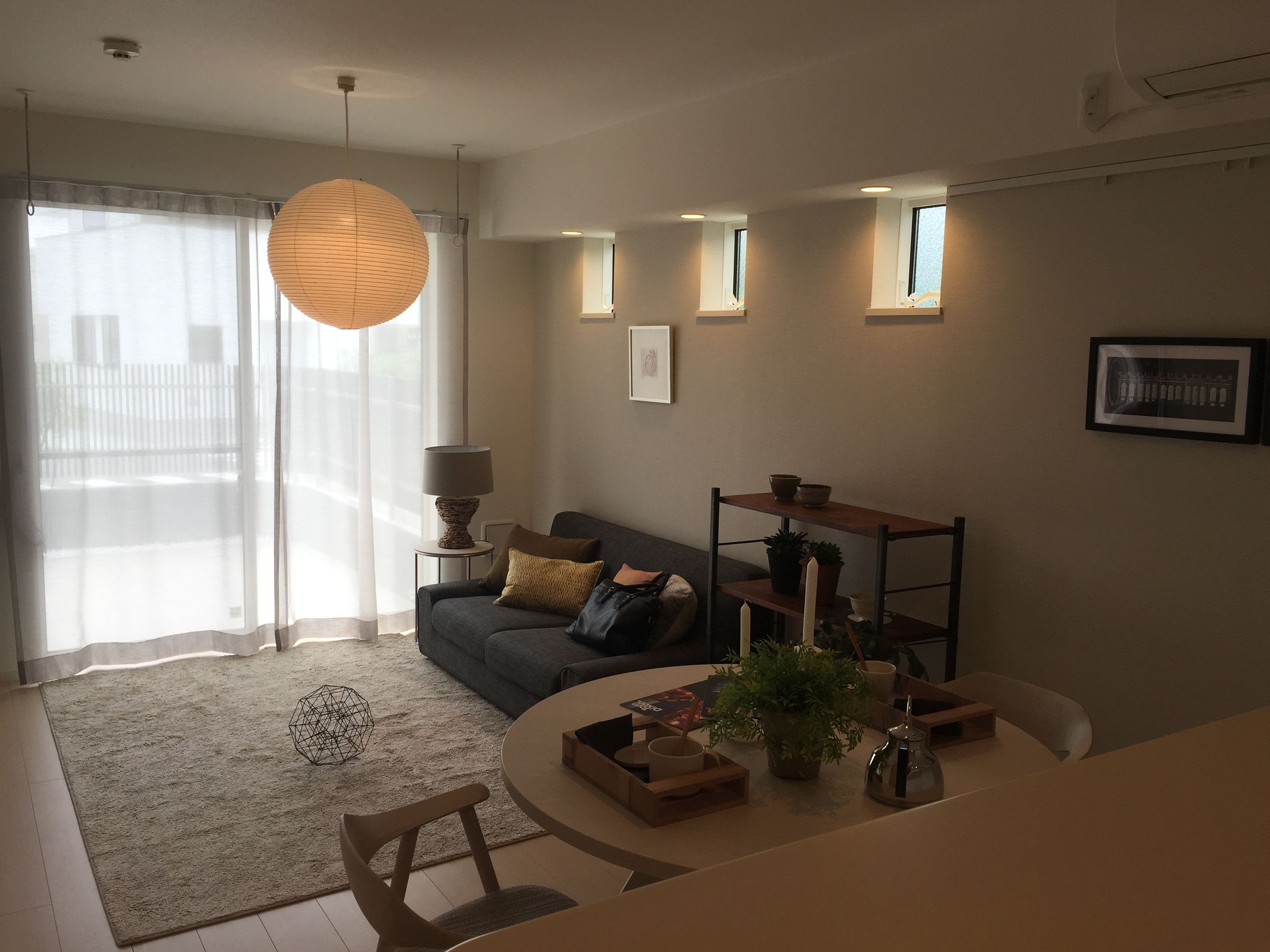 外部からの視線を考慮して道路側には高い位置にスクエア窓を配置。防犯性も確保したうえで、通風採光の優れた住戸となっている