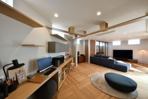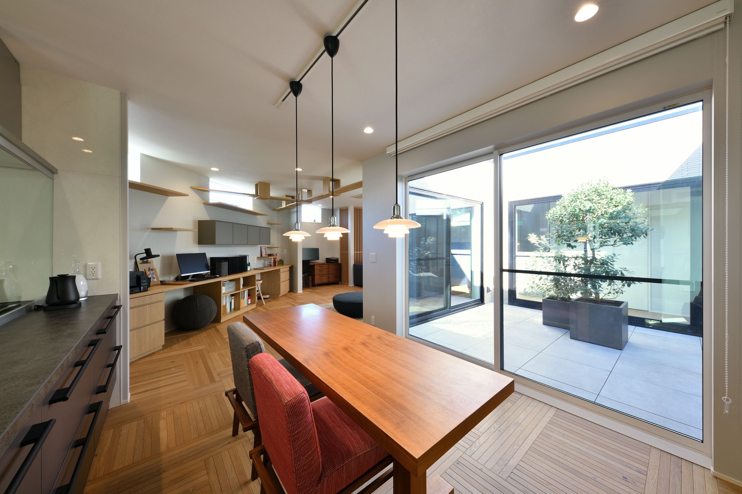 2階は回遊できる中庭からふんだんに光が降り注ぎ、外部を気にすることなく広がるリラックス空間