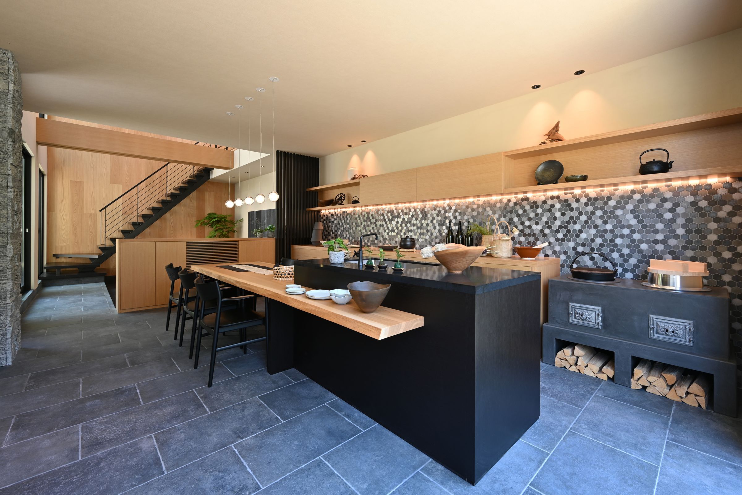 一日のはじまりは、かまどで炊いたご飯。 家族が集う食卓には、いつだっておいしそうな匂いが漂う。 やわらかな明かりにつつまれながら、日常の手間暇を楽しめる暮らし。