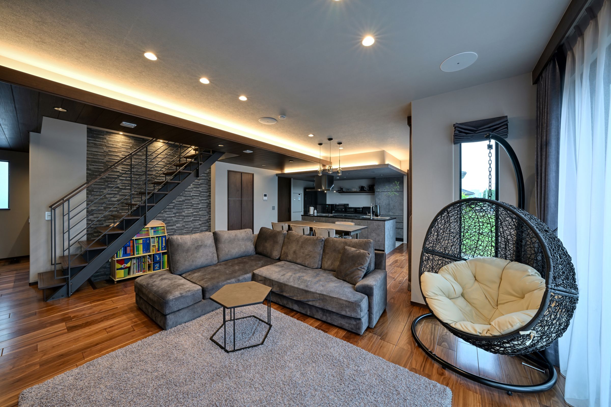 この空間の最大の魅力は、ご家族がそれぞれの時間を過ごしながら、お互いの気配を感じられることです。多機能なスタディスペースとして、忙しい子育て世帯の仕事と家事、育児の両立を実現します。