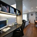完全に閉じられた空間ではないため、視線を横に向ければ開放的なリビングが広がり、いつでも家族の温かい気配を感じられる安心感があります。また、造作棚を設けることで必要な書類や書籍をすっきりと収納。常に整理整頓された環境で仕事に取り組めます。