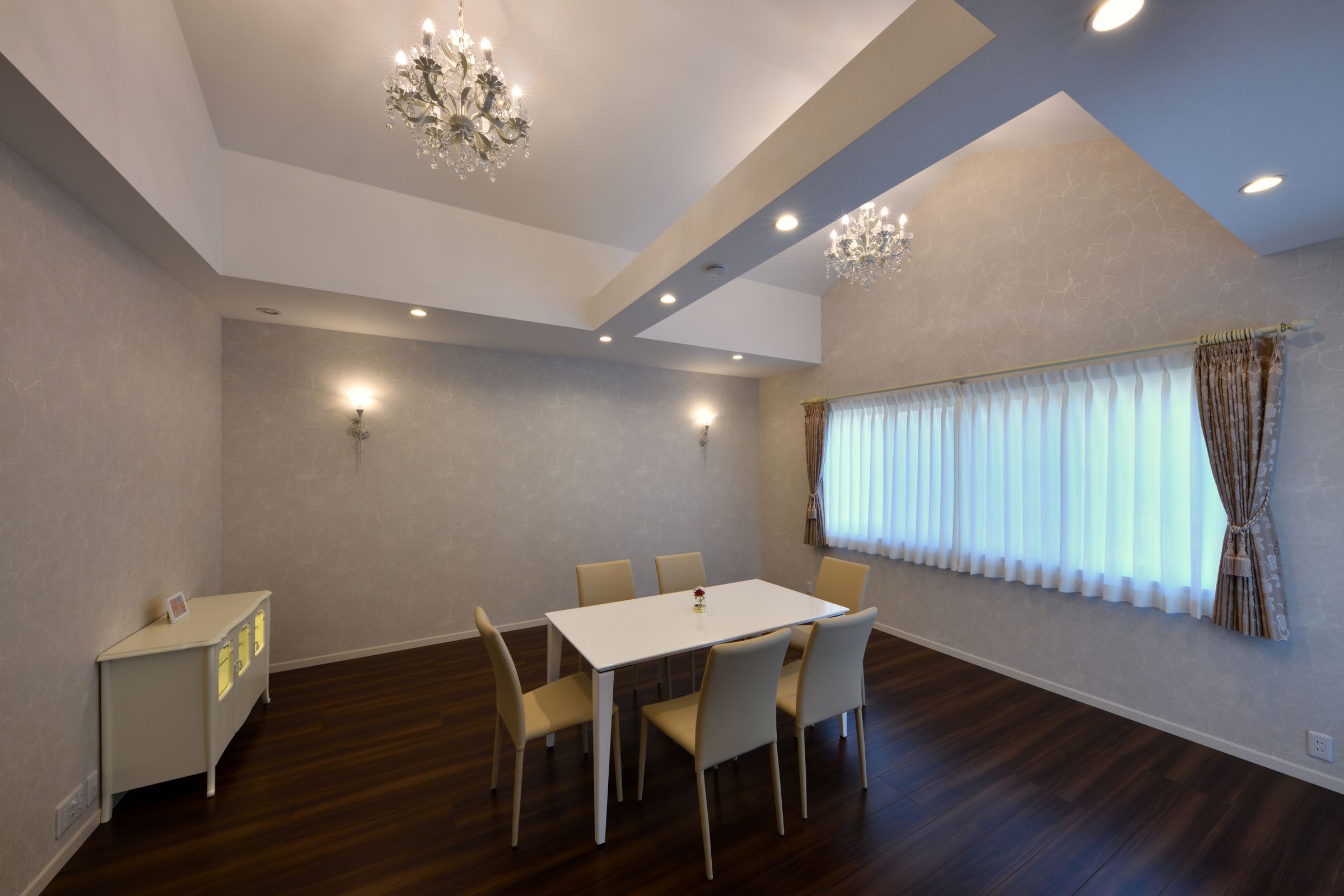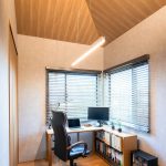 また、大開口の窓を一面に配置すれば、豊かな陽光が差し込み、打ち合わせの明るい雰囲気づくりにも役立ちます。壁から天井まで突板貼りを施すことで、空間に上質な一体感が生まれ、まるでカフェやオフィスにいるような心地よさを演出することができます。