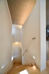 外部からの目線を遮りながら、光と風が通り抜けるプライベートバルコニー。都心部の住宅地にありがちな悩みをしっかり解消している。