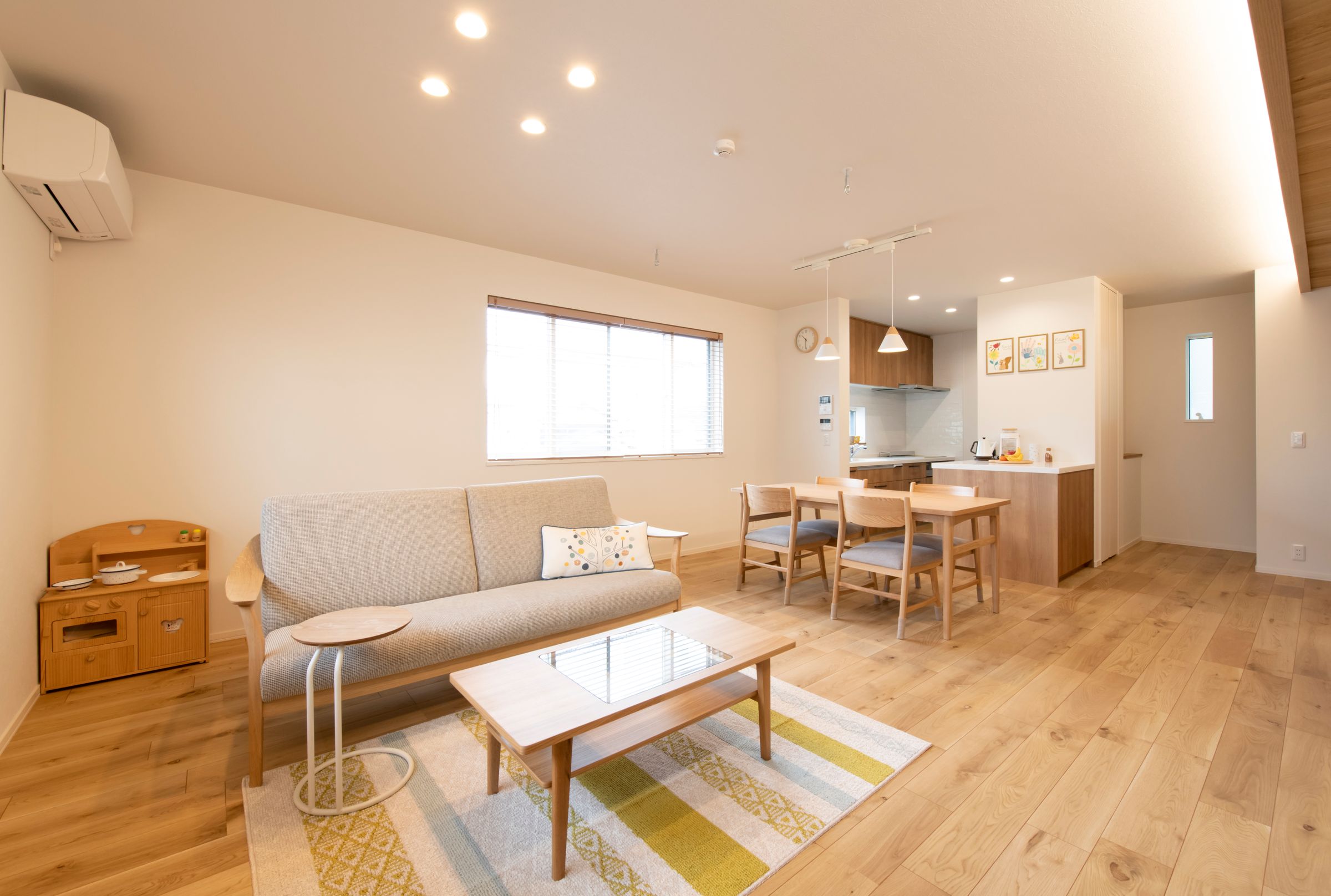 折り上げ天井の効果で部屋に奥行きが生まれ、部屋全体がより一層広く感じる。