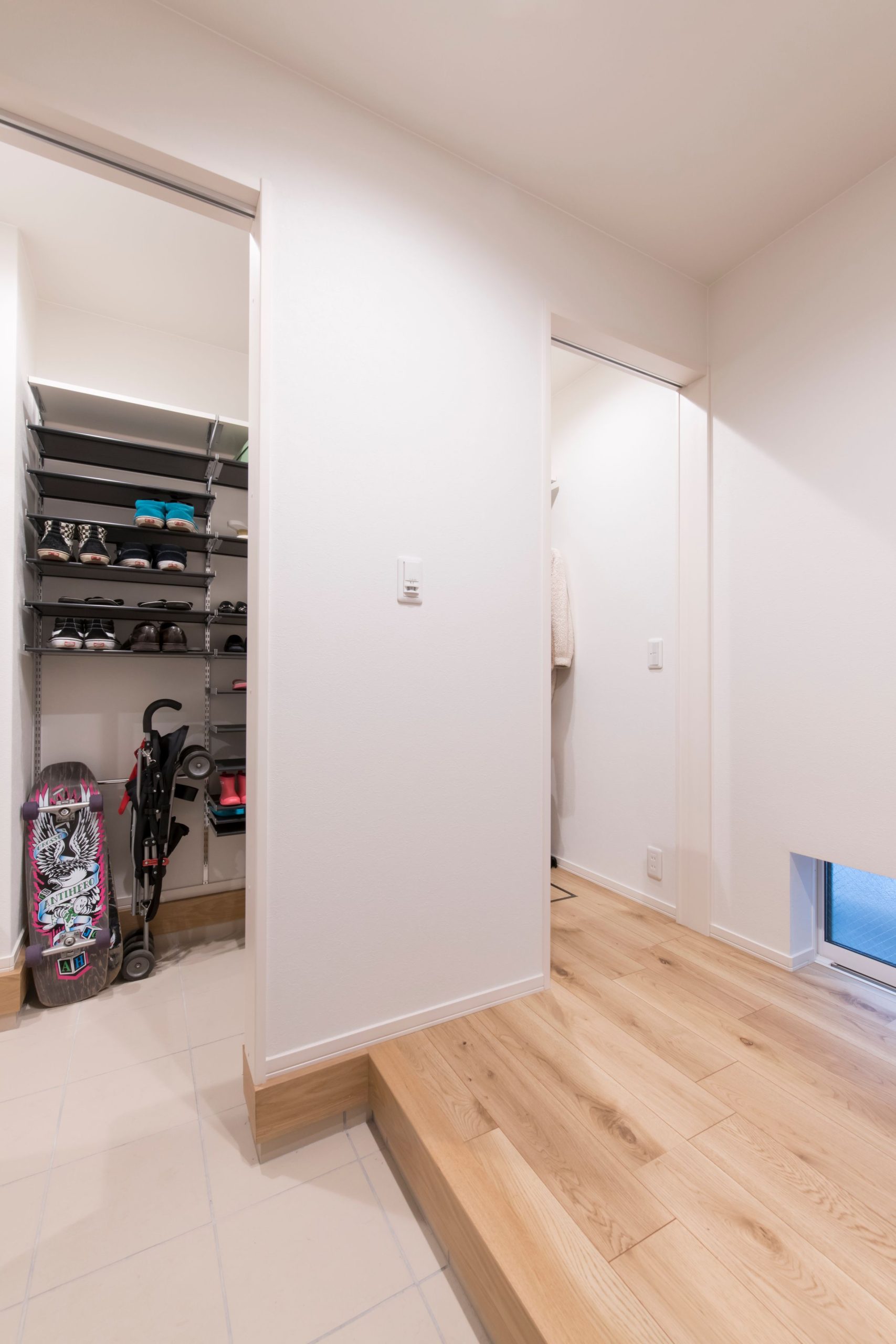 近くにいながらほどよい距離感を保てる。理想的な2世帯の暮らし方。玄関ホールの土間収納や玄関クローゼットは、お部屋をきれいに保つこだわりのポイント。