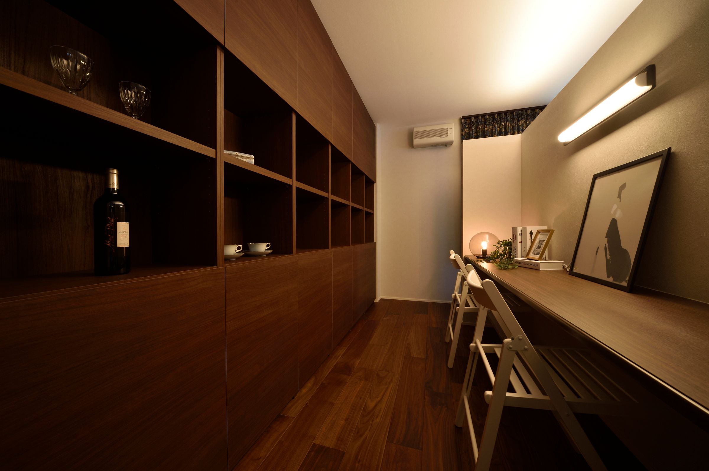 2階のセカンドリビング裏には書斎を設け、家族とのつながりを感じながら集中できる半プライベート空間。