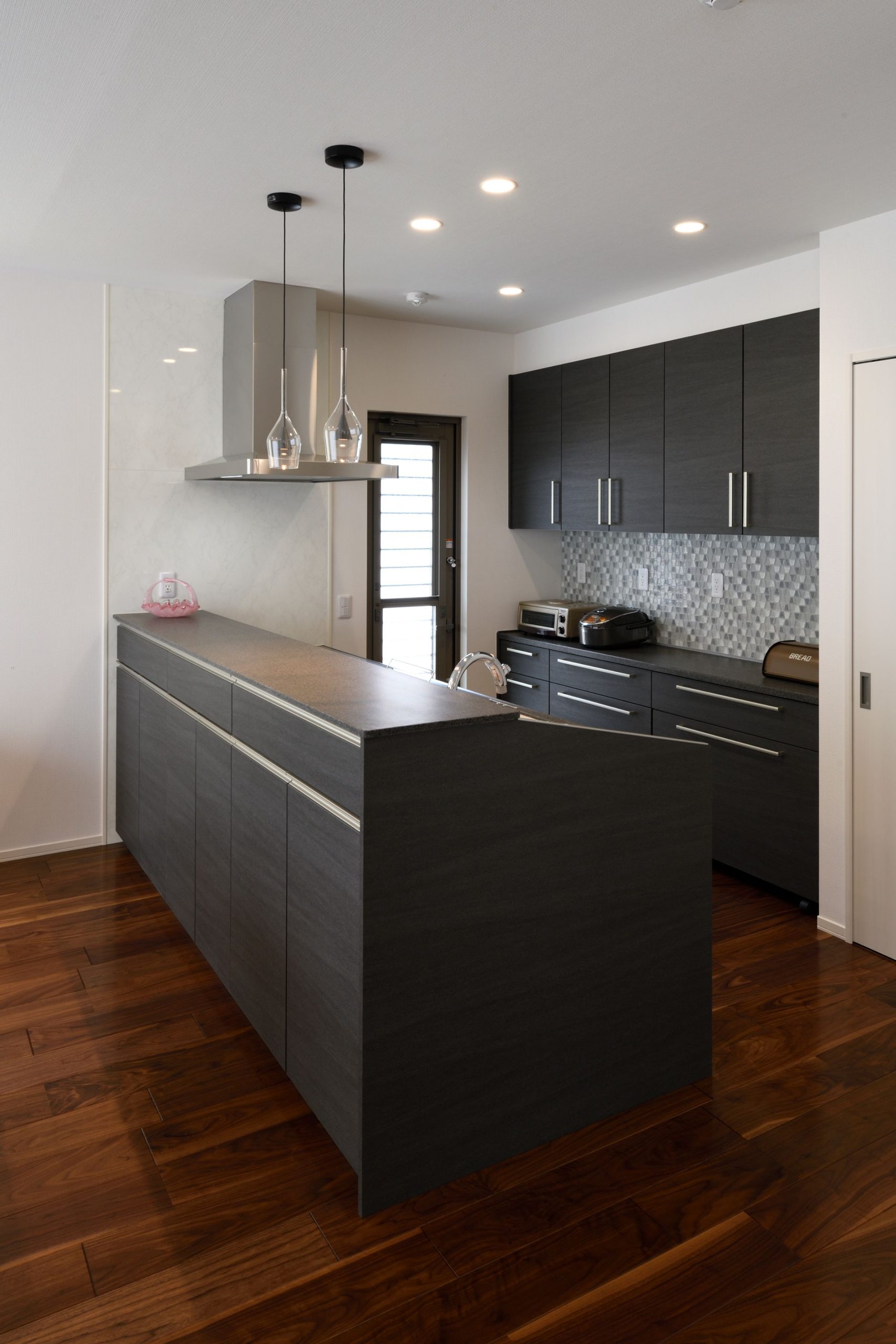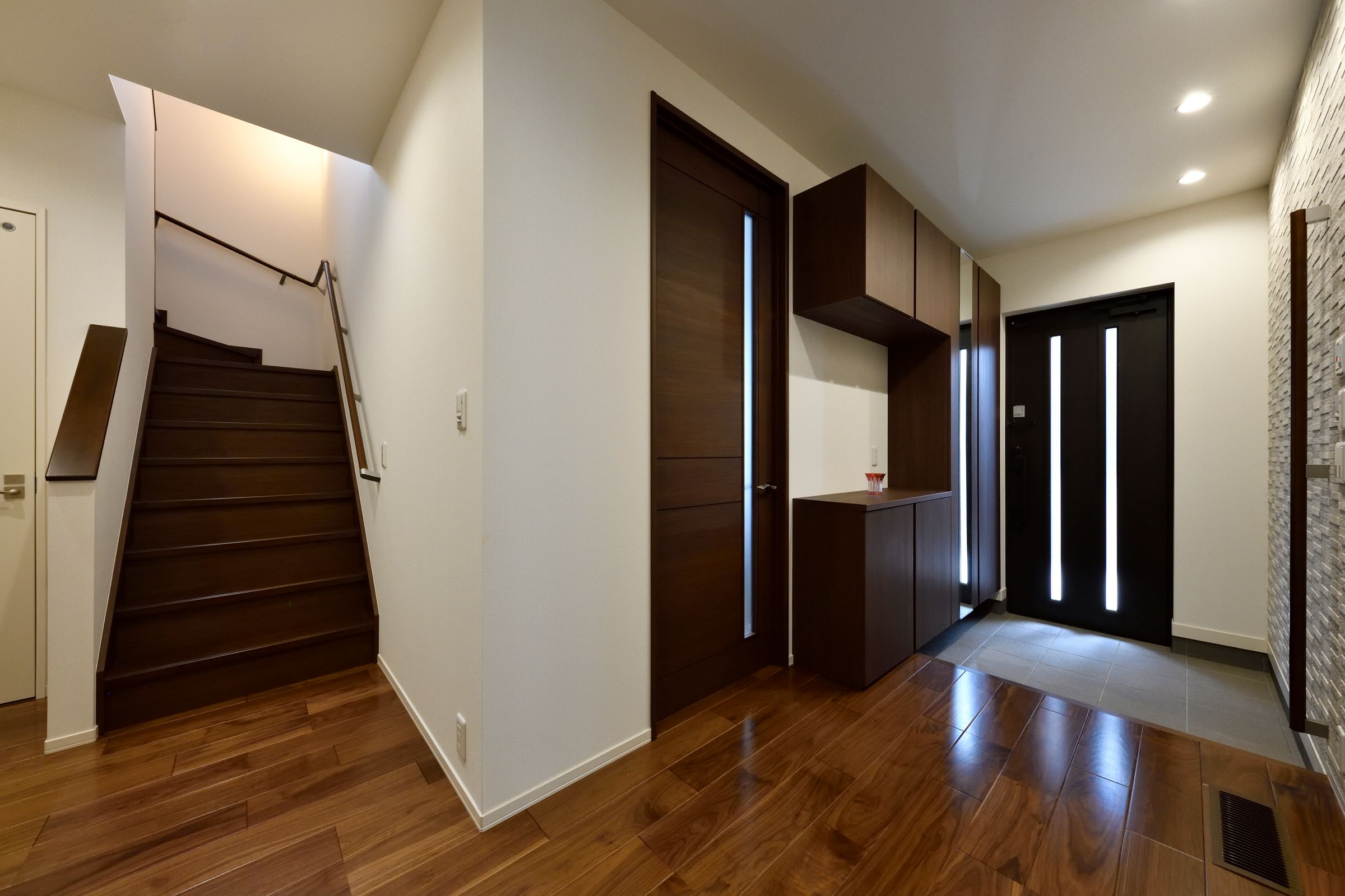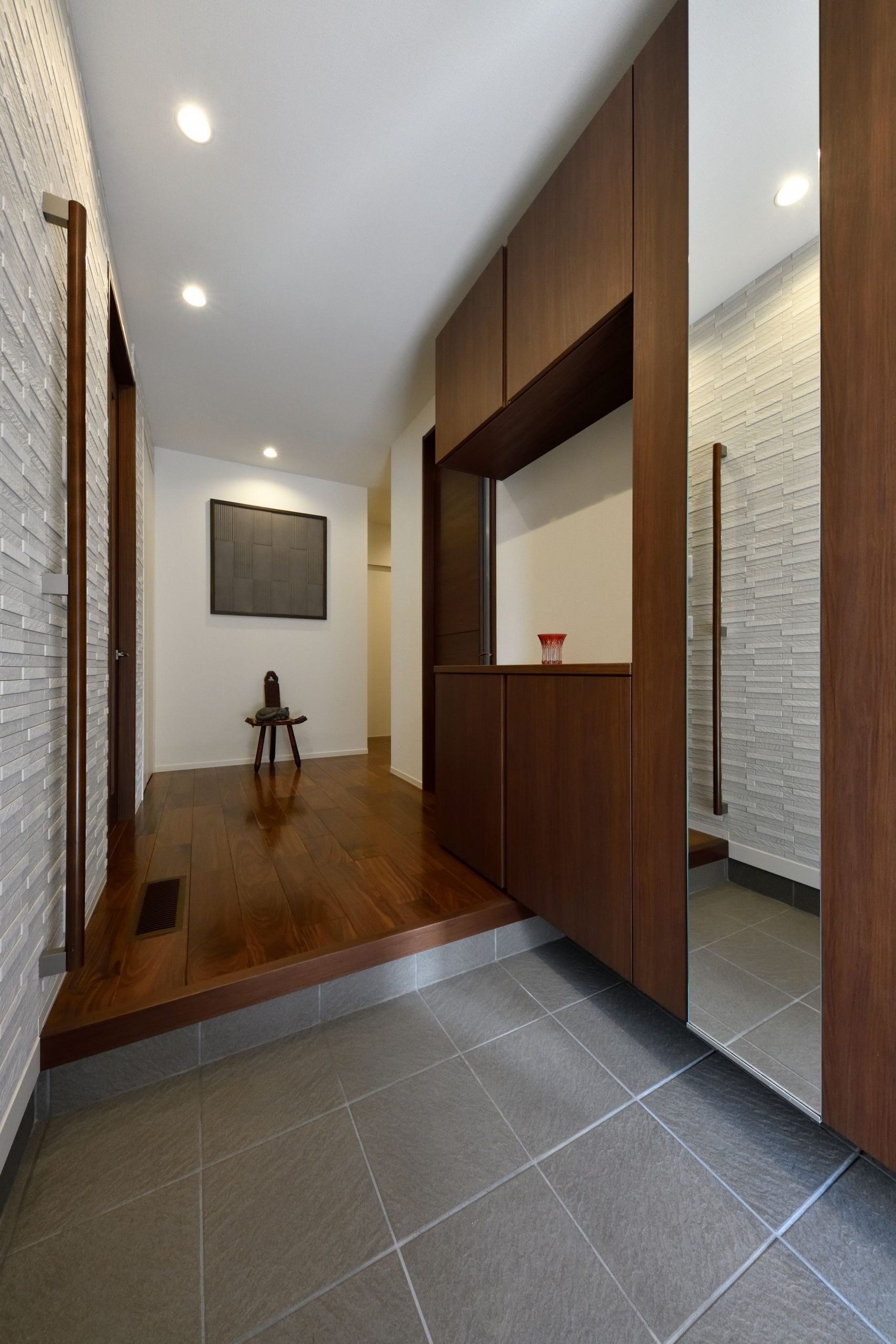 ボーダータイルとウッディ感あふれた内装が落ち着いたくつろぎを演出