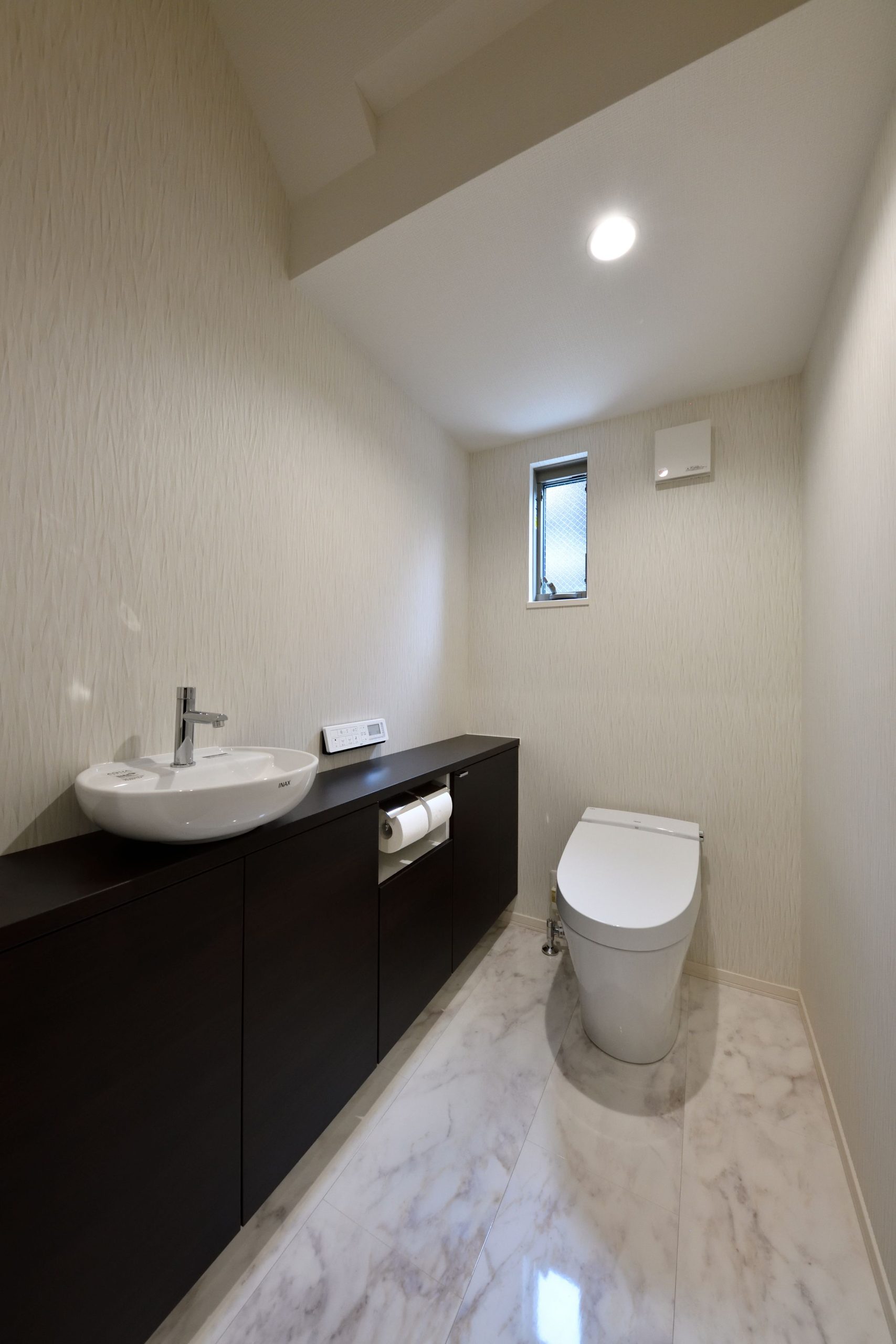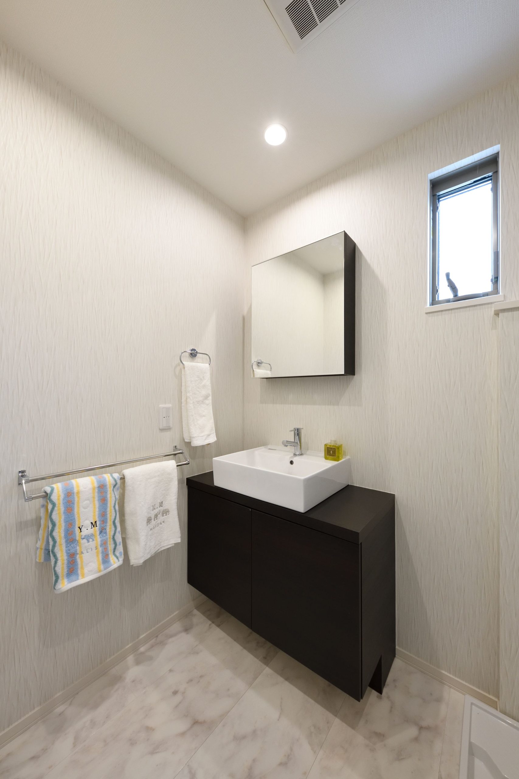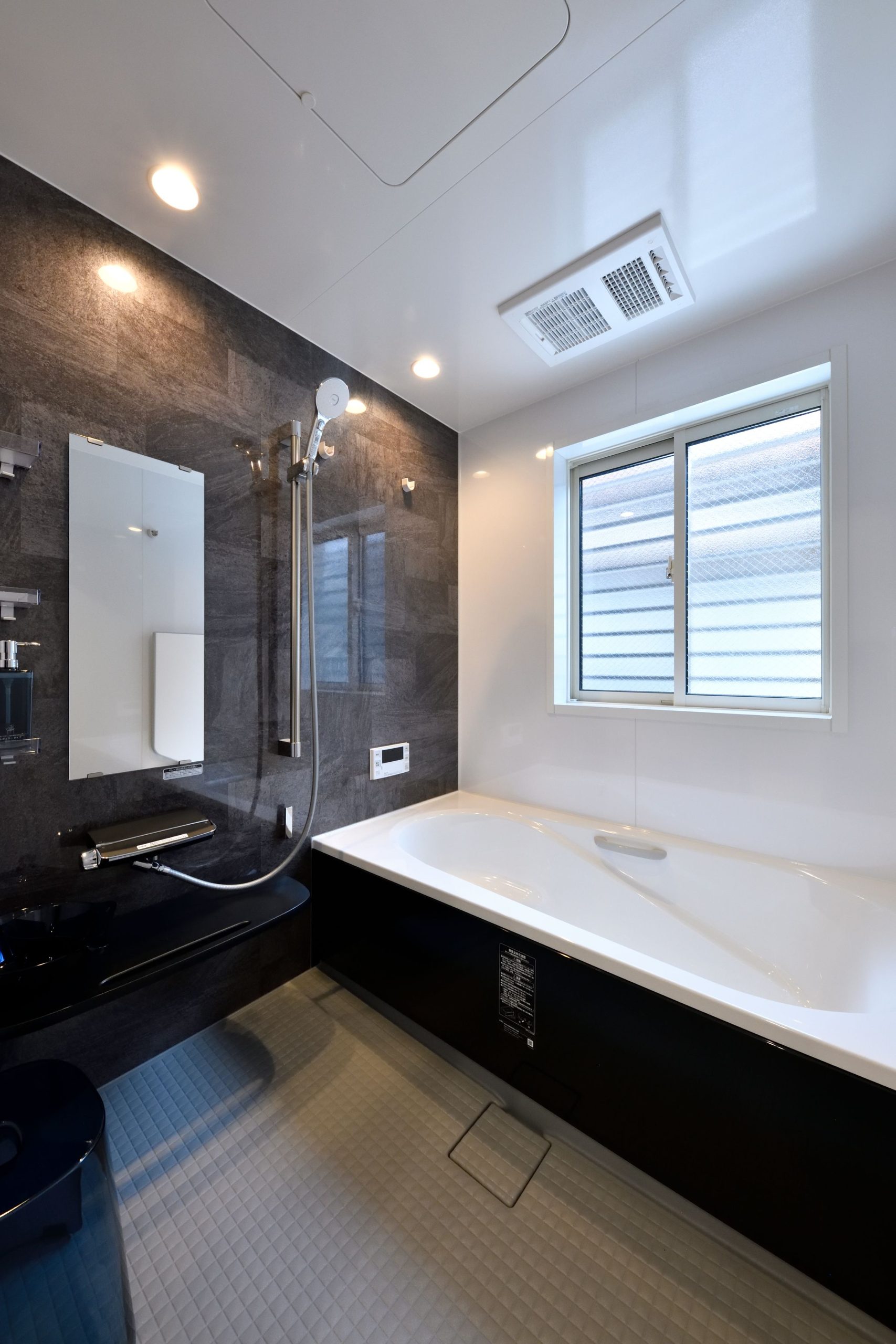 ボーダータイルとウッディ感あふれた内装が落ち着いたくつろぎを演出