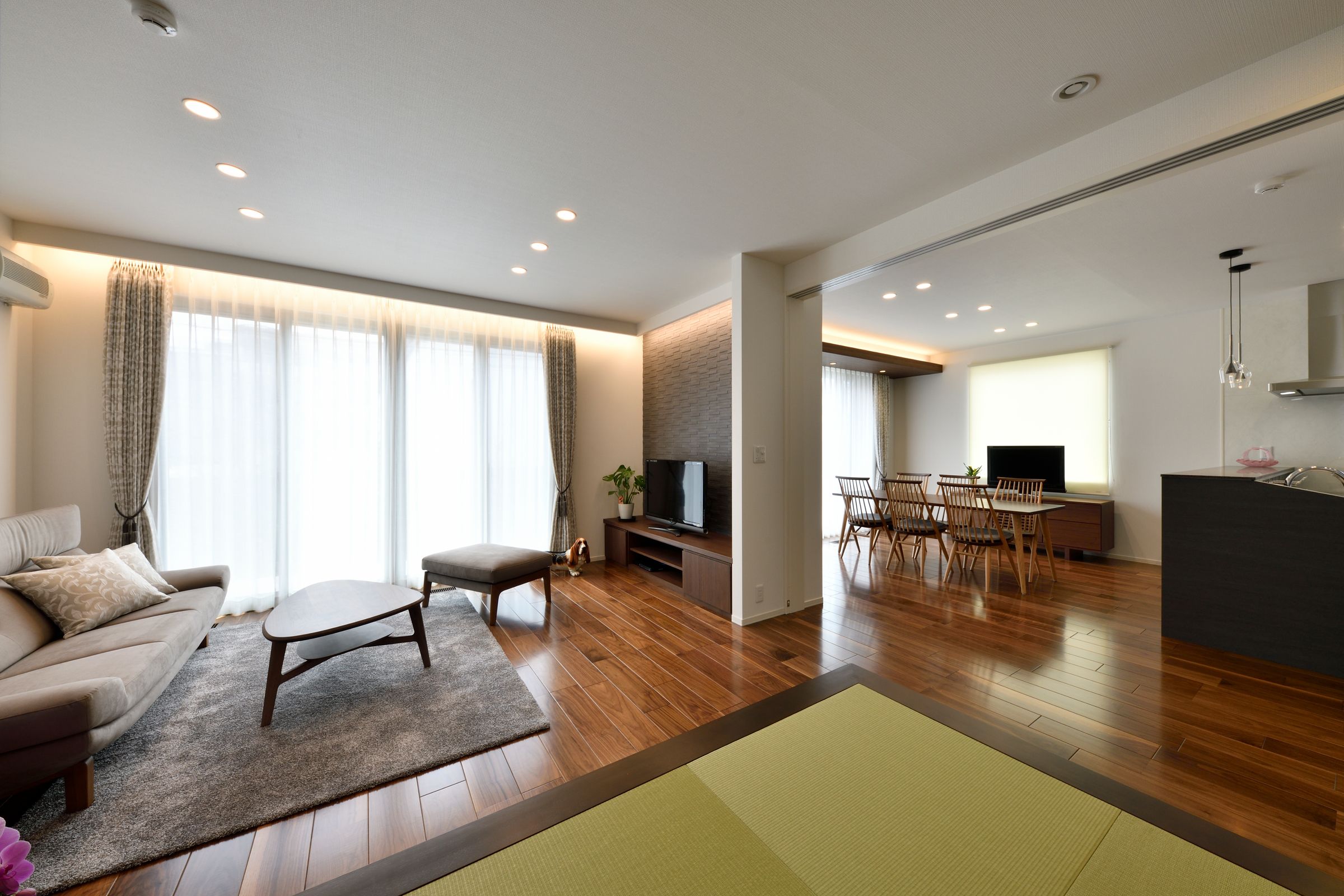 空間に広がりを生むLDKと一体化したガーデンテラス。