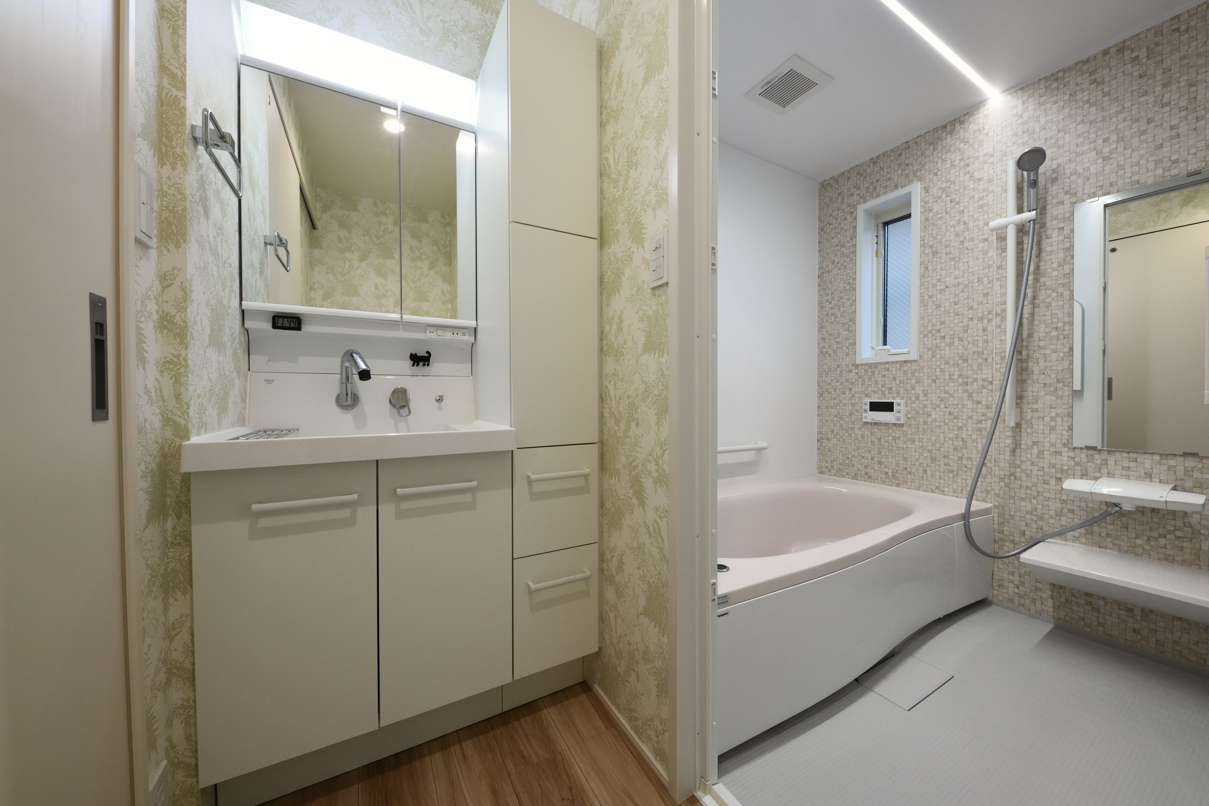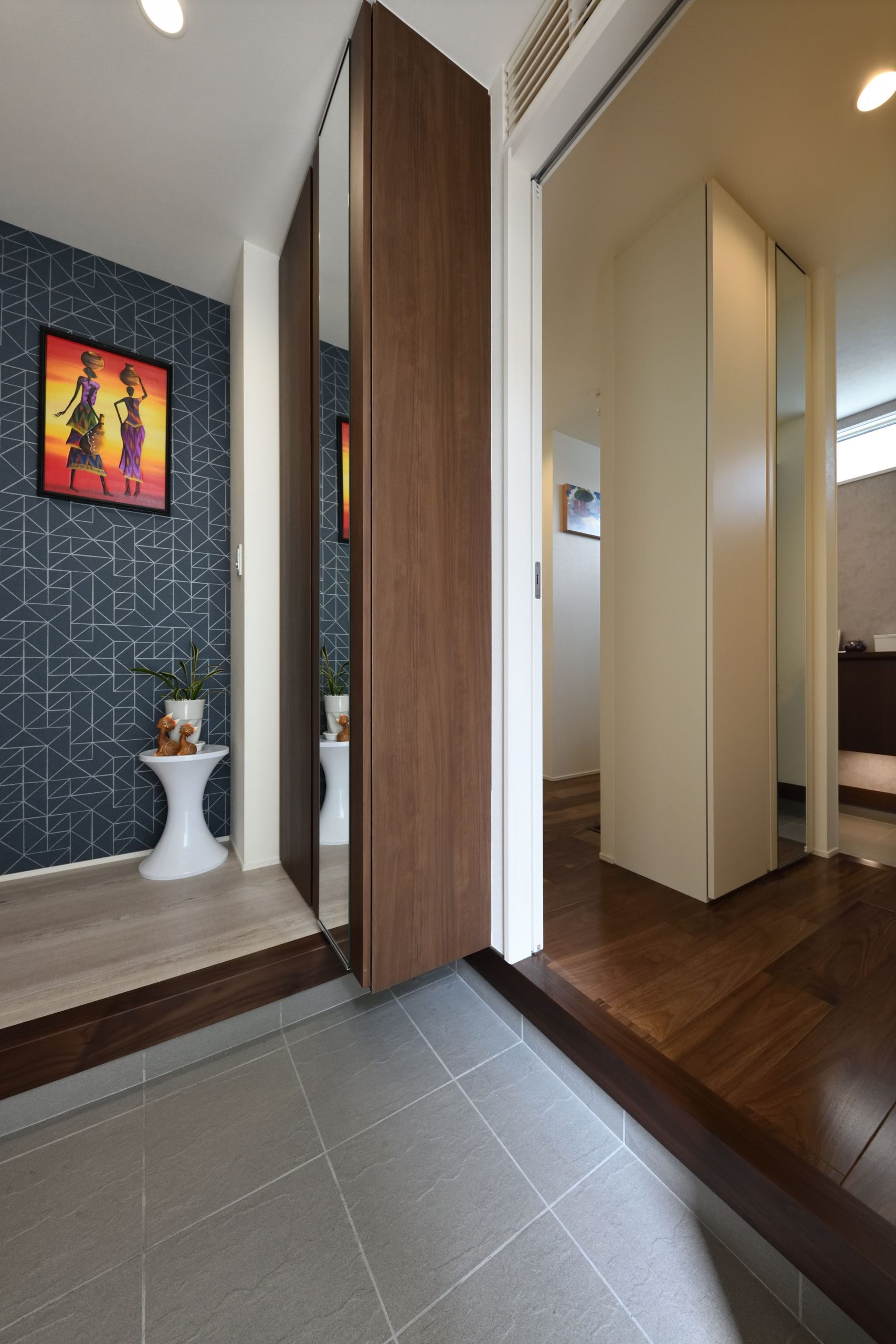 完全分離型の二世帯プラン。家族のみんなが大好きなバリをイメージしたさわやかな色使いのリゾートインテリア。帰宅後すぐに上着を脱ぎ、うがい手洗いができるニューノーマルな暮らしの動線。