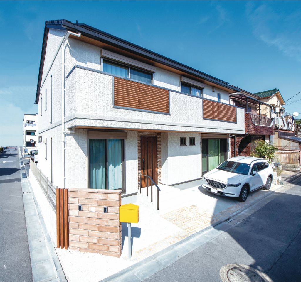 白い外壁とモダンなデザインが調和した住まい