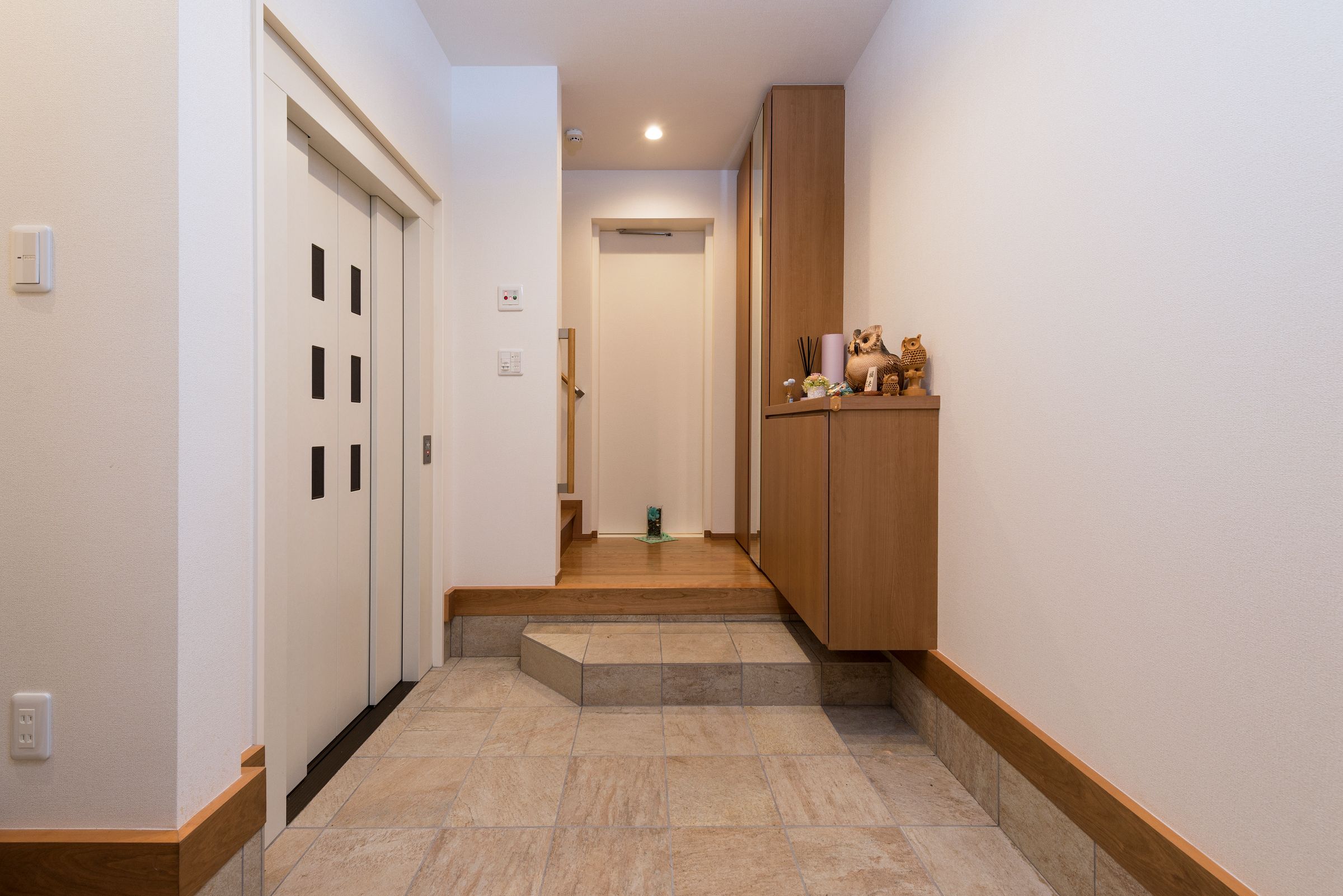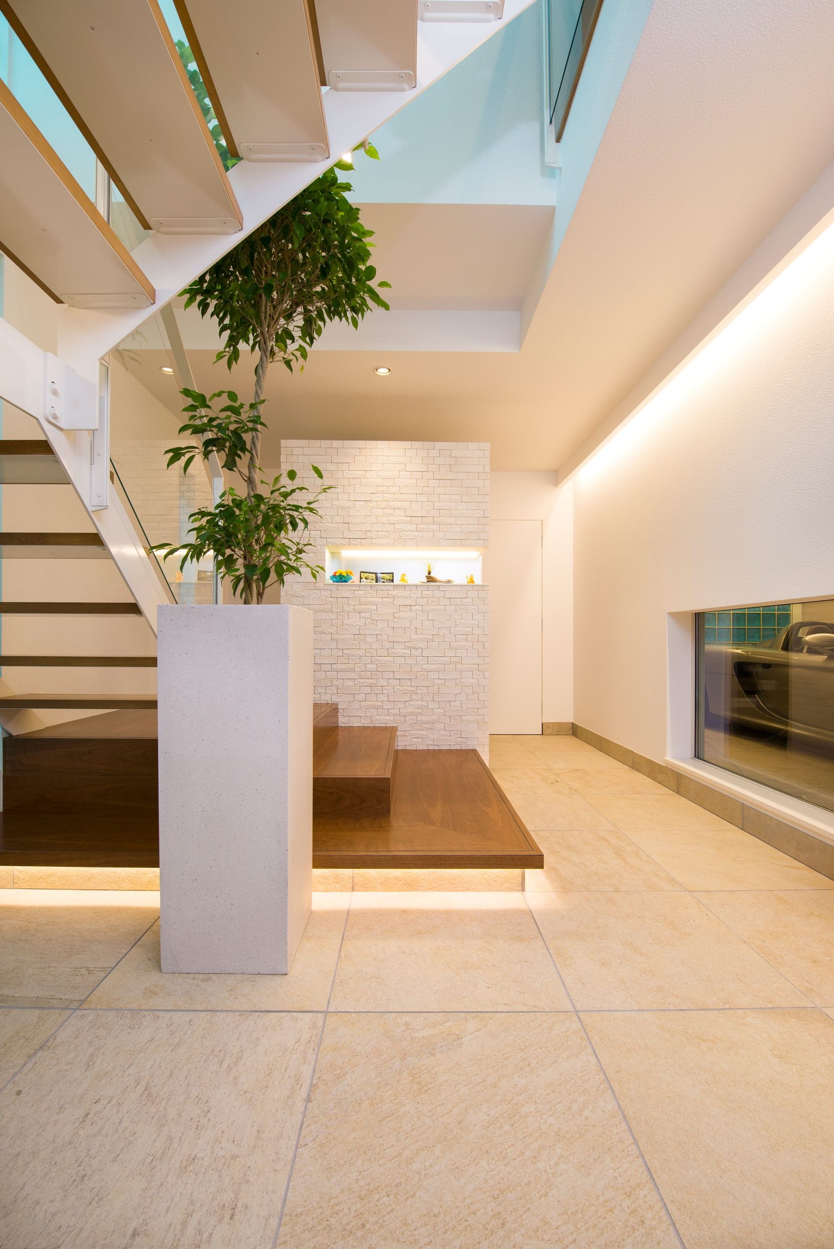 愛車が見えるエントランス。