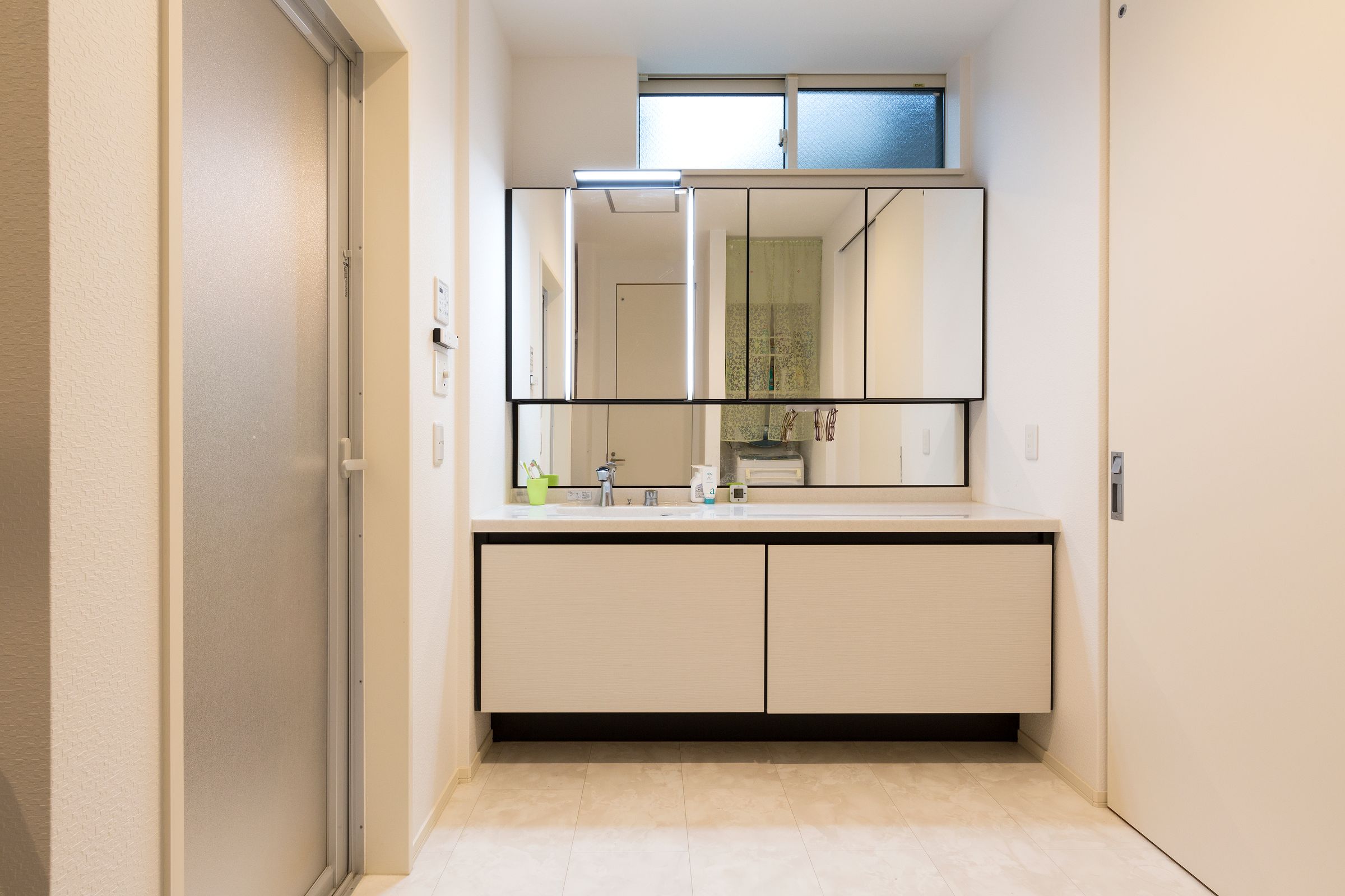 ガラスブロックや間接照明による採光の演出を施し、くつろぎの時間を叶えてくれる。