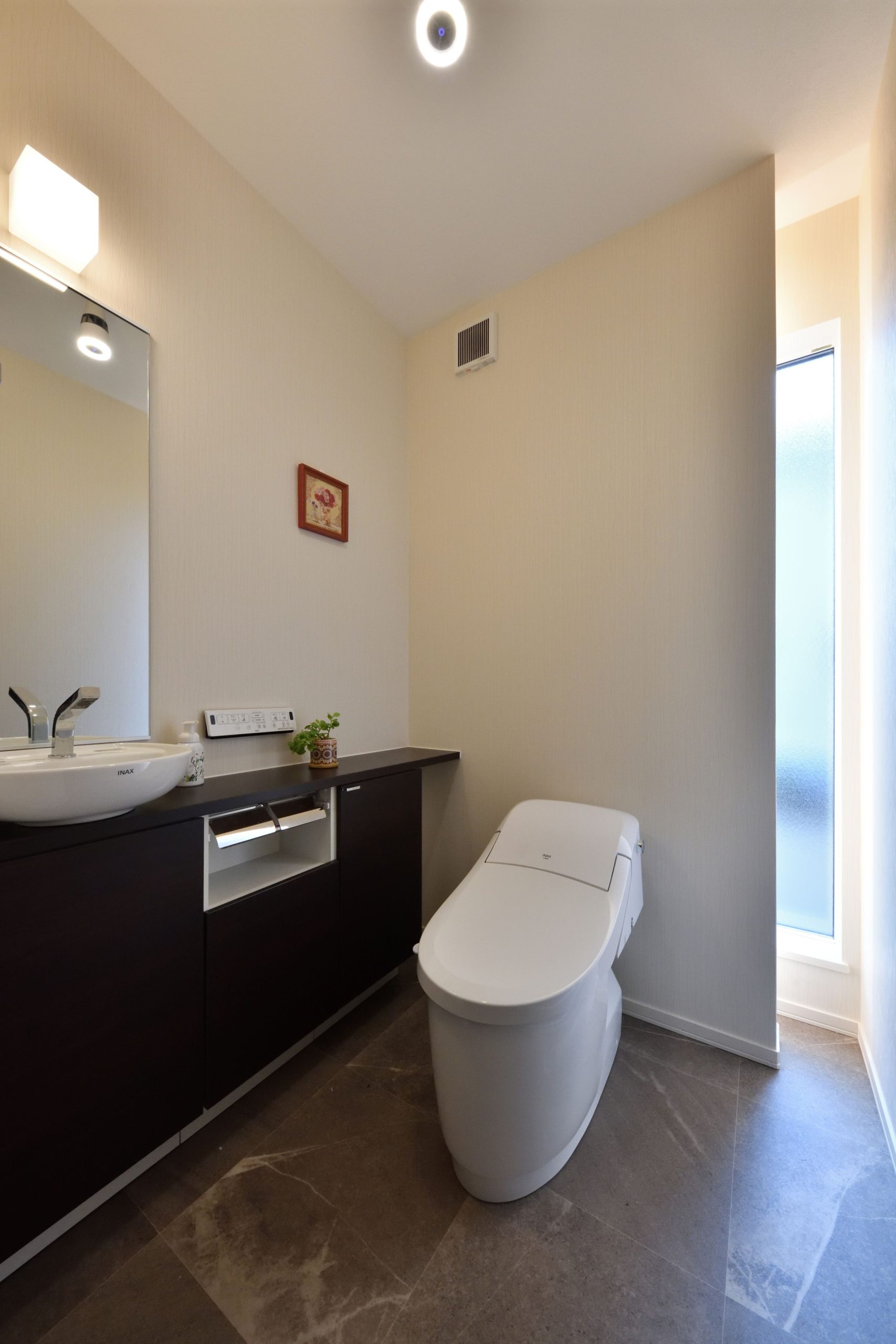 リビングダイニングを吹抜けにし、上下階を連続させることで広がりを持たせ、開口部からは光が降り注ぐ明るく心地よい空間を創出