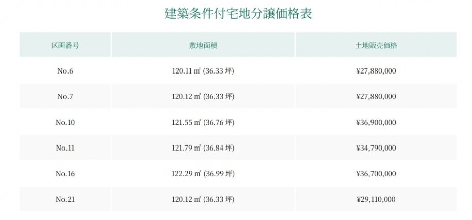- 33区画(非分譲1区画含む。うちトヨタホーム東京持ち分11区画)