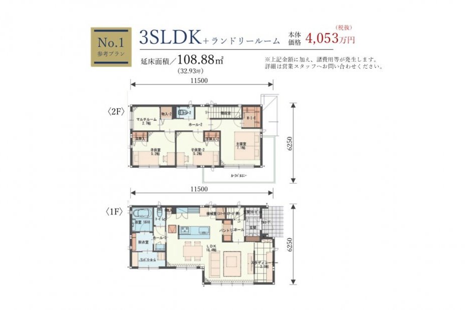 (1号棟)土地面積:230.52㎡/延床面積:108.88㎡