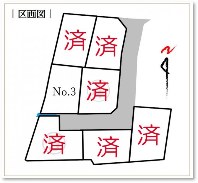 - 分譲時北側4.4m~4.7m 分譲地内新設道路6m