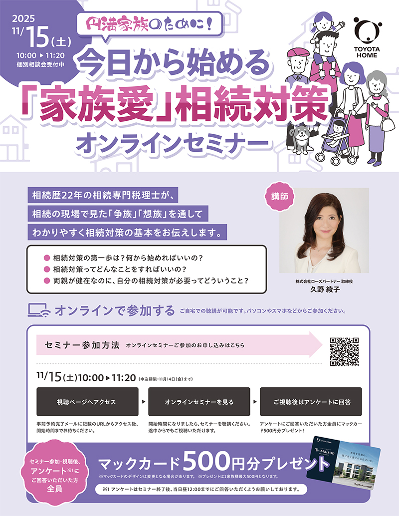 今日から始める「家族愛」相続対策オンラインセミナー《11月15日(土)》