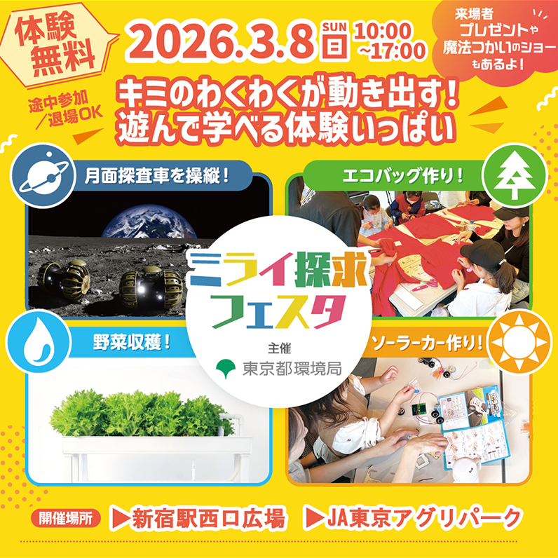 【3/8(日)開催】東京都環境局主催「ミライ探求フェスタ」に参加決定!
